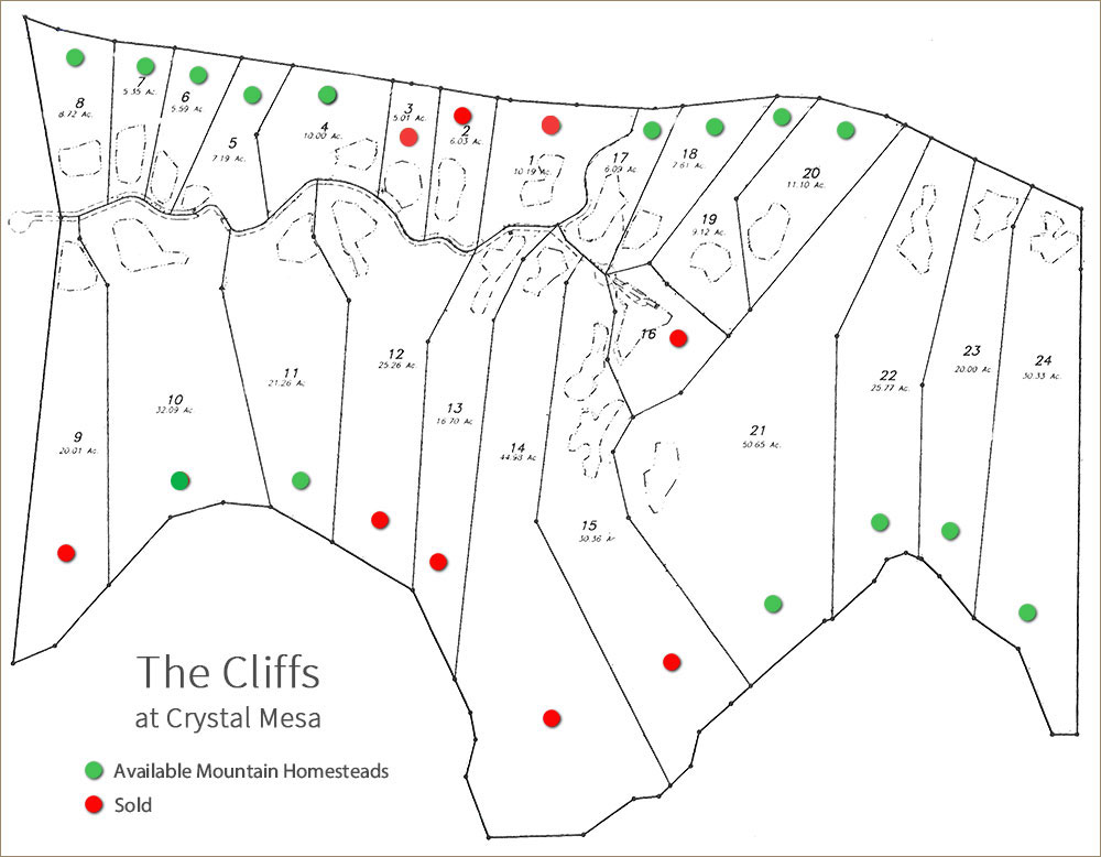 Nestled amongst piñon pine and ponderosa groves, Cliffs’ Mountain Homesteads provide privacy and seclusion while enjoying expansive, dramatic views and topography.